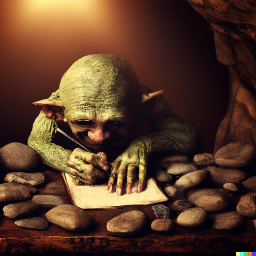 The talent of the new DALL-E is most obvious in its surprising displays of understanding: when asked to draw the creature Gollum, DALL-E does not simply create a simulacrum of the movie-version of Gollum (and surely such movie posters were in its training set)—incredibly, the result looks like what an illustrator might draw from the written description of Gollum after reading The Hobbit.