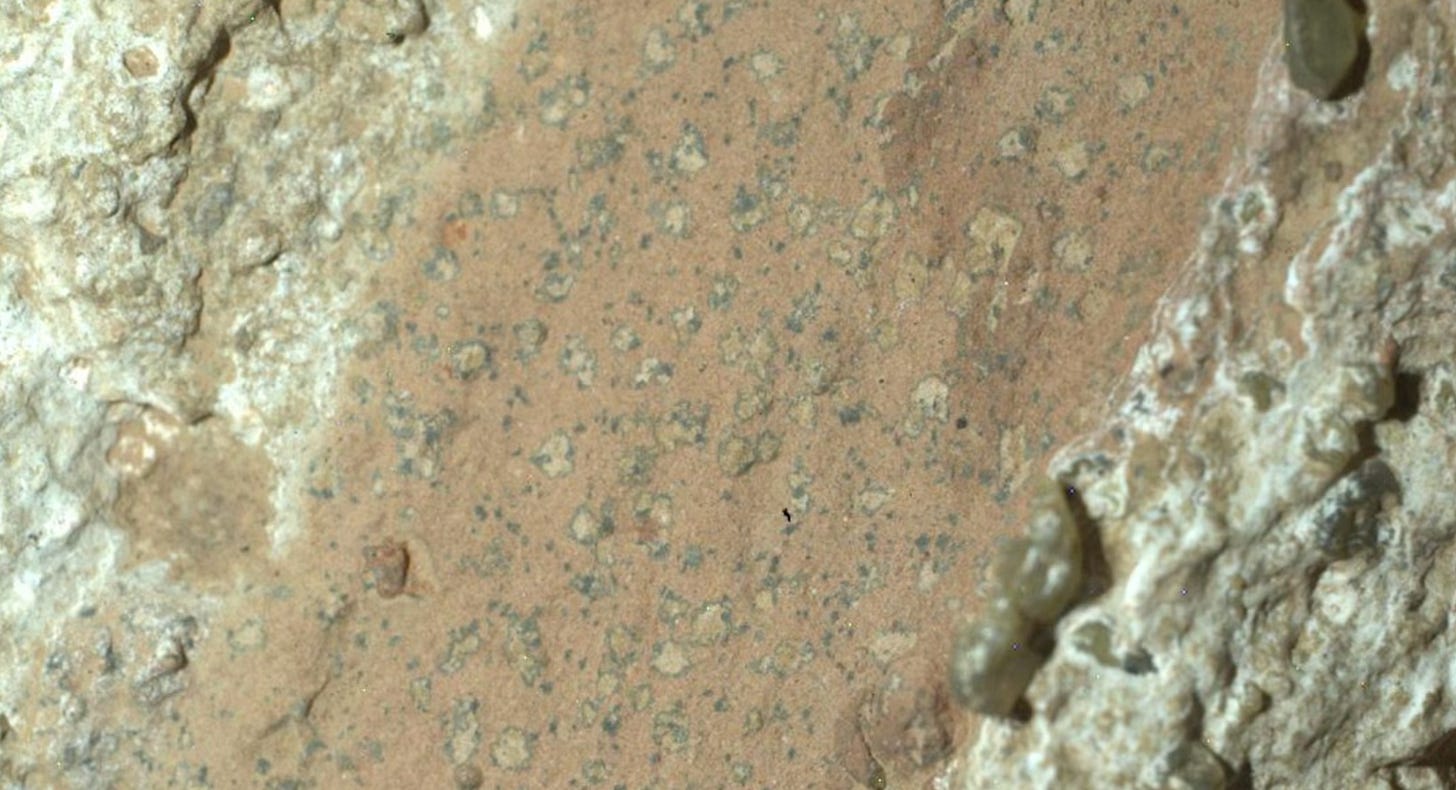 Minerals like these, produced by Fe- and S-based metabolisms [iron and sulfur metabolisms], provide some of the earliest chemical evidence for life on Earth, and are thought to represent potential biosignatures in the search for life on Mars. The fact that the reaction fronts observed in the Cheyava Falls target are defined by small, spot-shaped, bleached zones in an overall Fe-oxide-bearing, red-coloured rock invites comparison to terrestrial ‘reduction halos’ in modern marine sediments and ‘reduction spots’, which are concentrically zoned features found in rocks of Precambrian and younger age on Earth.